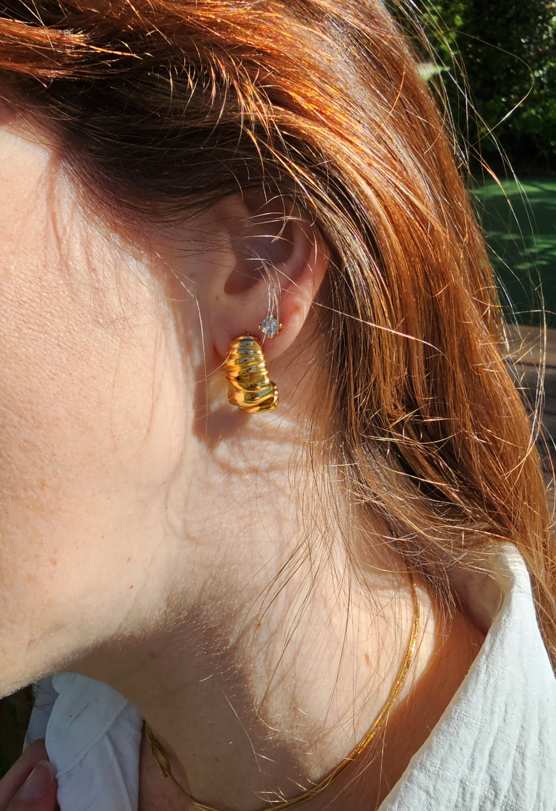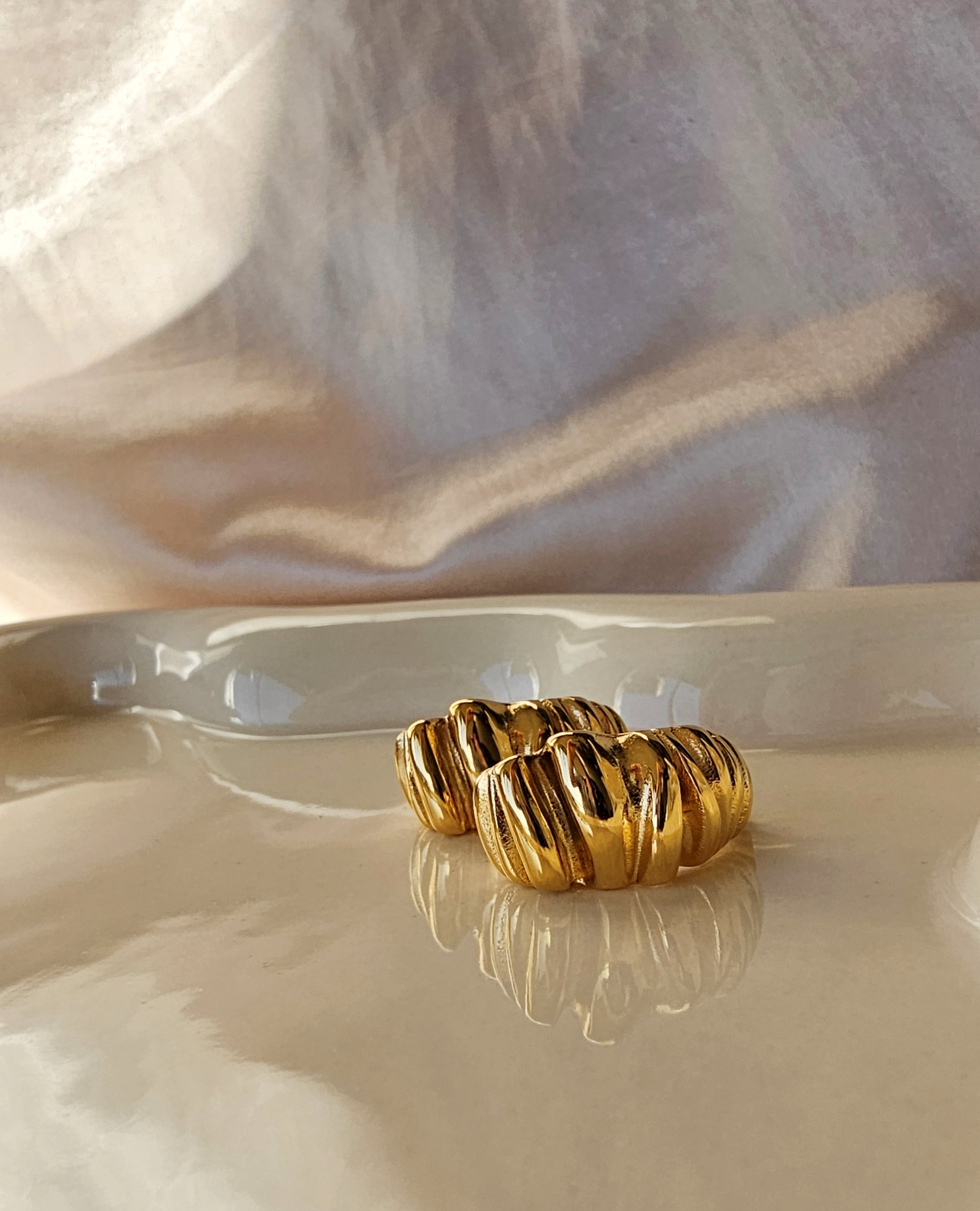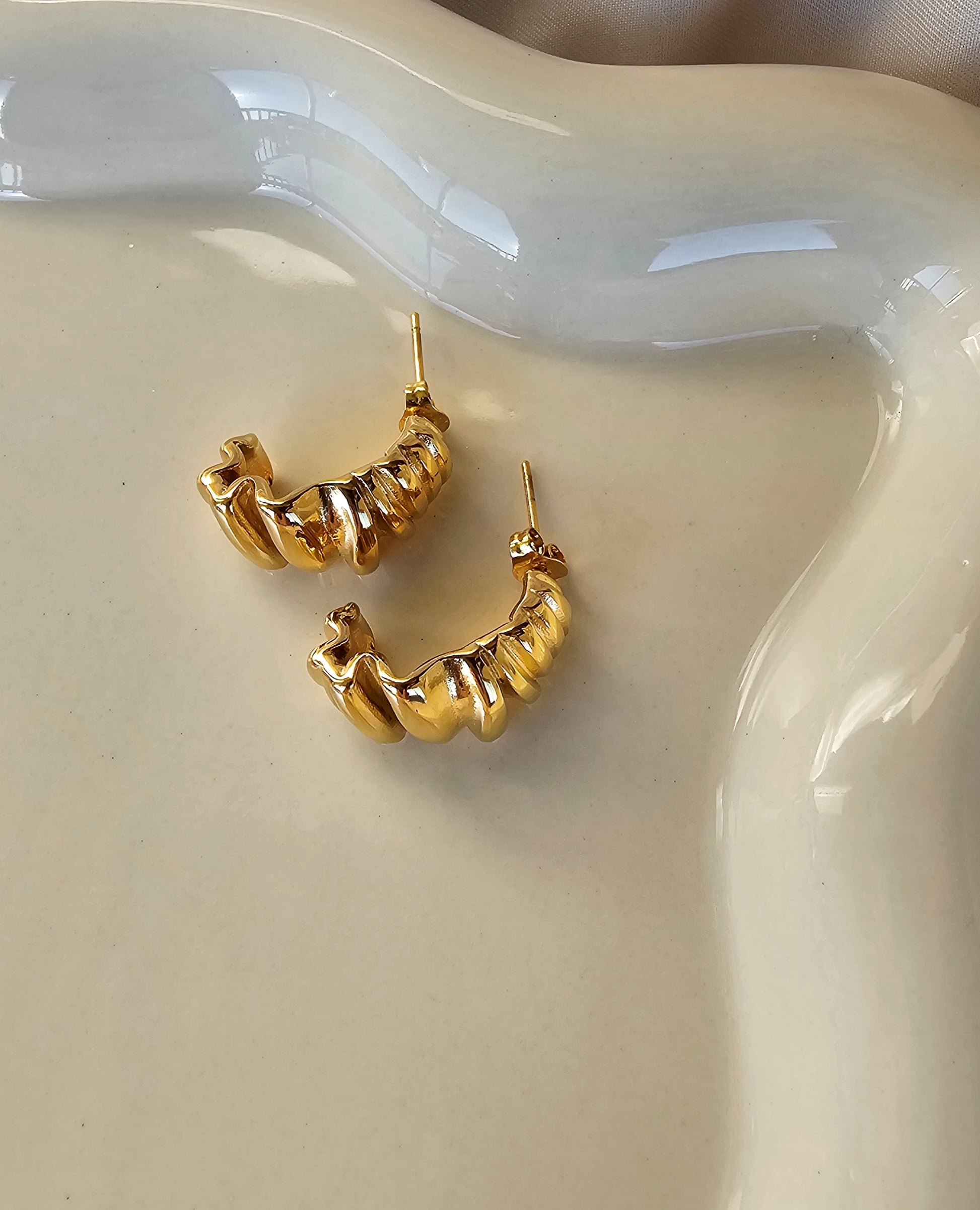 Bold yet refined, these gold-plated hoops feature a sculpted, ribbed design that catches the light beautifully. Perfect for elevating everyday looks with a touch of modern elegance.